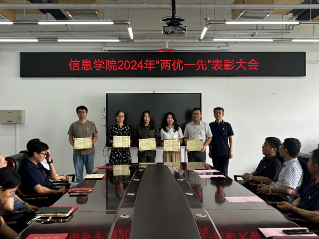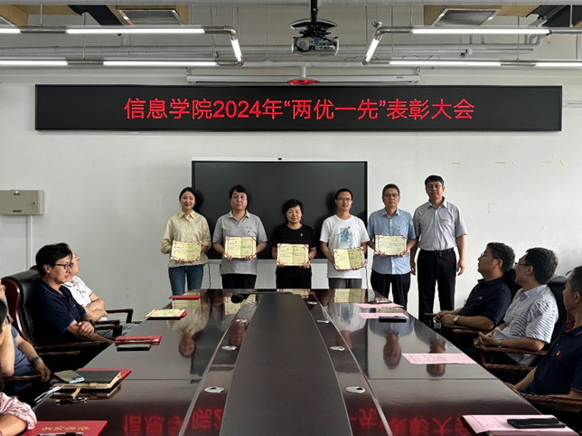 202471日,信息党委开展“光荣在党20年、10年”党员纪念证书颁发、“两优一先”表彰大会、新党员入党宣誓等系列活动。校党委组织部副部长王磊出席活动,学院领导班子成员、在党二十年党员、在党十年党员、“两优一先”代表、2024春季接收的全体预备党员参会。会议由学院党委书记王伟宾主持召开。