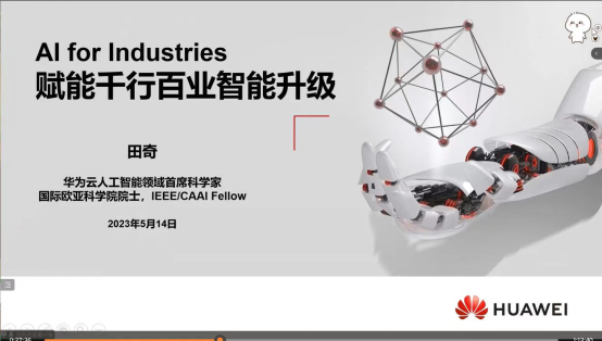 田奇老师做了题为《AI for industries,赋能千行百业智能升级》的报告,介绍了华为云发布的语言、视觉、多模态、预测决策、科学计算等系列大模型,探讨了人工智能工业化开发模式,为煤矿、电力、能源、气象、制药等行业实现了智能化转型,为其他行业产业升级打下坚实基础。