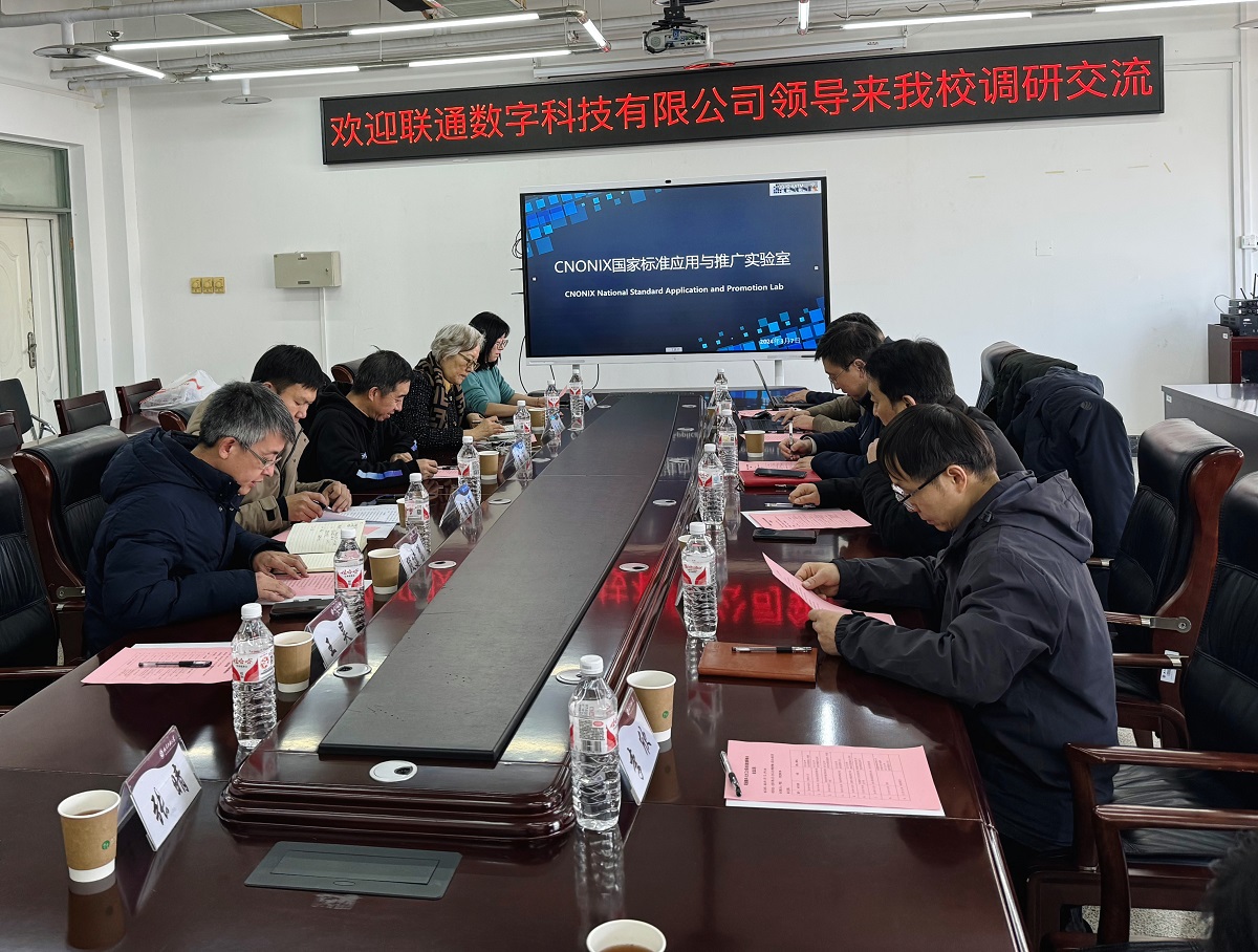 3月7日,联通数字科技有限公司数字化转型首席专家杨海明一行来beat365官网进行调研交流。科学技术研究院副院长李道勇、beat365官方网站院长马礼及beat365官方网站CNONIX国家标准应用与推广实验室全体成员参加座谈,会议由beat365官方网站副院长段建勇主持。